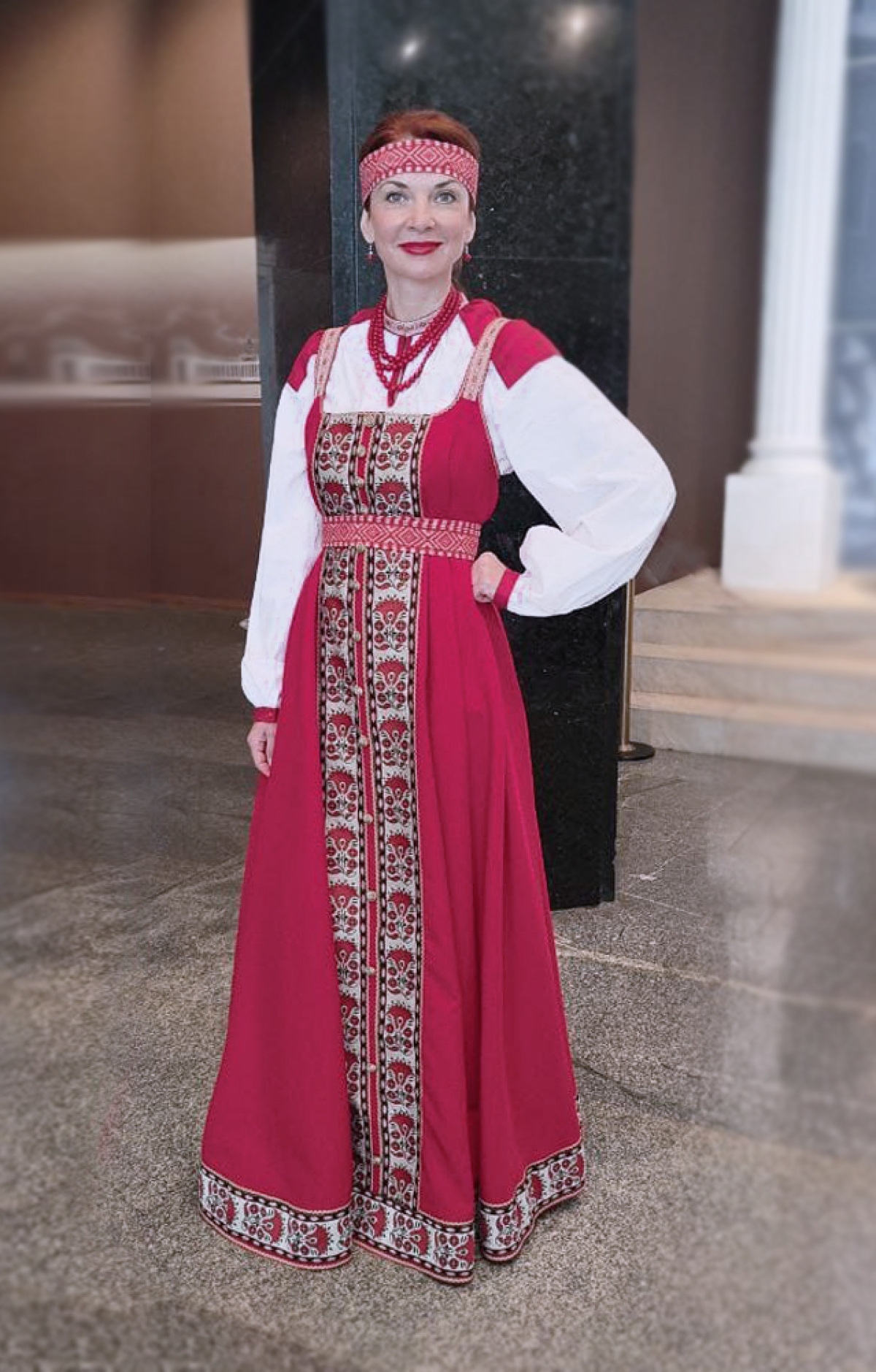 Национальная одежда русского народа формировалась на протяжении долгих веков — это отражение истории славян, их традиций, обычаев и обрядов. Отличительная черта народных костюмов Руси — красный цвет. Цвет, символизирующий плодородие, пламень и солнечный свет. Этот цвет присутствовал и в одежде крестьянина и боярина. До тридцати трёх тонов красного присутствует в славянских одеяниях — червонный, мясной, багрецовый, червчатый, кровавый...