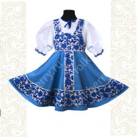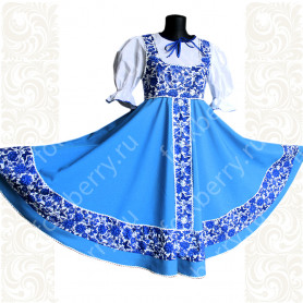 Костюм «Зима» выполнен в сине-белой цветовой гамме. Накидка декорирована яркими красными цветами.