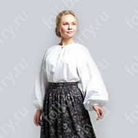 Ткань - лен небеленого цвета, плотный, мягкий, качественный. Декор, жаккардовая тесьма шириной 3 см, располагается, согласно традиции, вокруг шеи, по груди с левой стороны, на рукавах, поясе, по низу косоворотки.