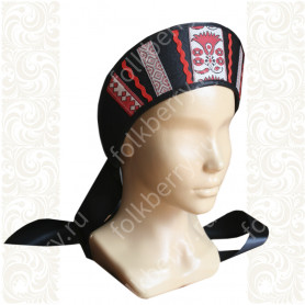 Платье сшито из яркого красного атласа и декорировано вставками с рисунком «хохлома». Юбка фасон полтора «солнца», подол и горловина украшены белым кружевом и тесьмой. Рукава «фонарики» сделаны из легкой, белой органзы.