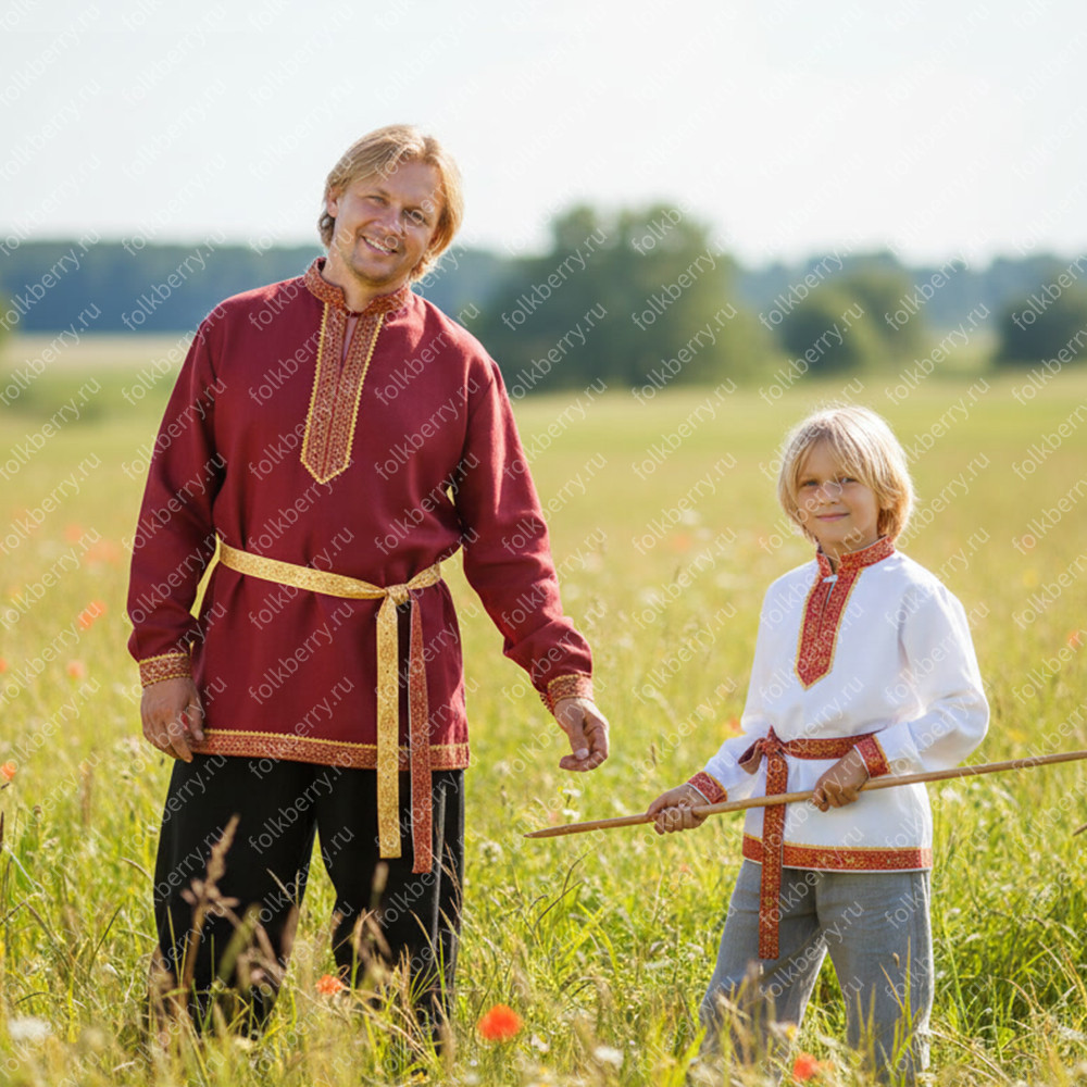 Данная модель привлекает внимание сочным бордовым цветом и благородным, тканным орнаментом на груди. Рубаха «Молодецкая» выполнена из натурального, плотного, умягченного льна. Хороший, оригинальный подарок важному для Вас человеку. В комплекте имеется пояс. По индивидуальному заказу можно подобрать порты.