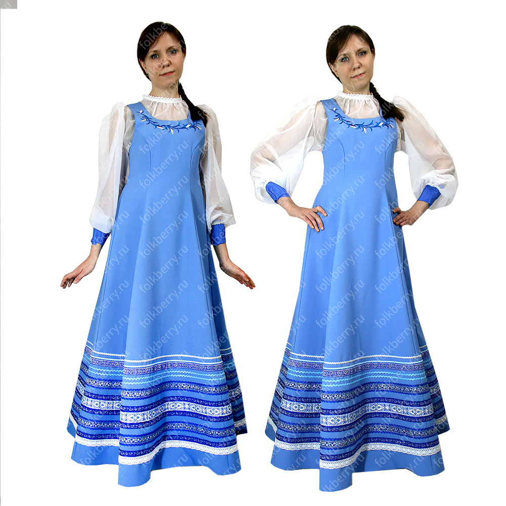 Костюм «Жар-Птица», состоящий из сарафана с блузой, выполнен в традиционном славянском стиле, предназначен для театральных и концертных выступлений, славянских праздников и тематических мероприятий.